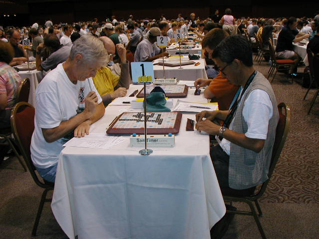Go to: Commentary Games Players Photos Profiles Standings Press Merchandise Back to NSC 2002 Photos Round 28 NSC 2002 Photo 28-008Congratulations to our new National Champion, Joel Sherman! See also: video clip 1 (2 MB), video clip 2 (2 MB). (video courtesy Roger Cullman) Table 1, division 2, Chuck Armstrong (Saline, MI) vs. Sal Dijamco (Margate, FL) and Mark Landsberg (Laguna Woods, CA) vs. Clay Daniel (Dallas, TX). |