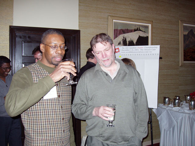 Go to: Commentary Games Players Photos Profiles Standings Press Merchandise Back to 2003 Canadian SCRABBLE Championship Photos: Round 1 2003 Canadian SCRABBLE Championship Photo 01-014Ray Francis (Pickering ON) and Shaun Goatcher (Mississauga ON). |