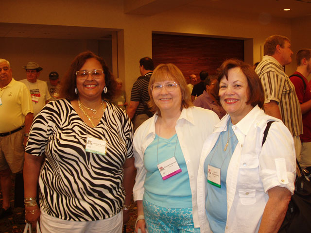 Making the meeting and greeting rounds: Marlon Hill hugs on Muriel Sparrow Reedy.