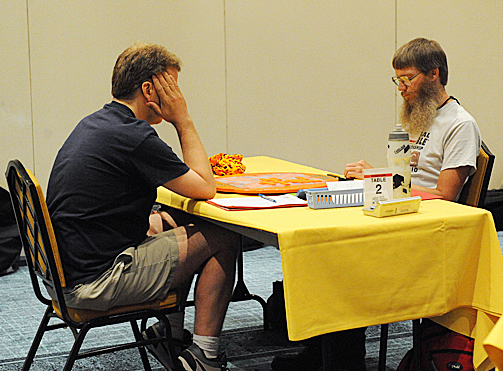 Two-time National SCRABBLE Champion, Dave Wiegand play three-time National SCRABBLE Champion, Nigel Richards in Round 28.